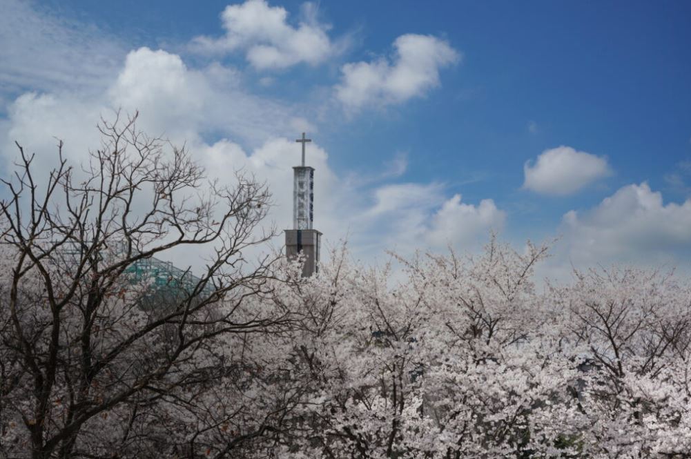 벚꽃 향연 속의 십자가는 그렇게 말없이 많은 가르침을 주며 두 손 모으는 기도를 올리게 했다.