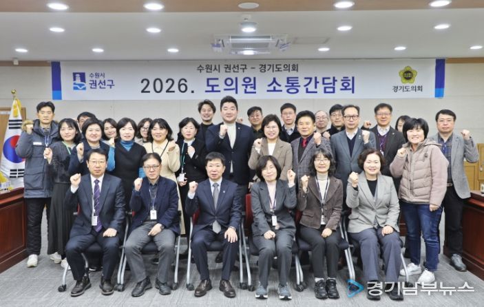 이날 간담회에는 구청 간부공무원과 경기도의회 황대호 문화체육관광위원장, 이애형 교육행정위원장, 문병근 의원, 장한별 의원 등 권선구 지역 도의원들이 참석했으며, 2026년 상반기 특별조정교부금 필요사업 설명, 주요 건의사항 청취 및 구정 발전 방안 논의 순으로 회의가 진행됐다.
