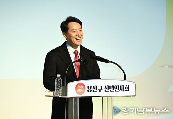 [경기남부뉴스 김혜숙 기자] 오세훈 서울시장이 23일 오후 3시 용산아트홀(용산구 이태원동)에서 열린 ‘2026년 용산구 신년인사회’에 참석해 올해 시정 운영 방향을 전달하며 주민과 소통했다. 이 자리에서 오 시장은 서울시가 중점적으로 추진 중인 ’서울체력9988 체력인증센터‘와 ’기후동행카드‘, ’미리내집‘ 등 시민체감형 정책도 공유했다.