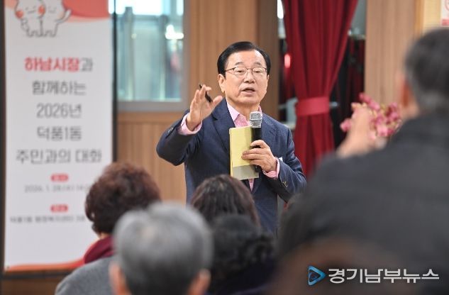[경기남부뉴스 김정옥 기자] 이현재 하남시장은 28일 덕풍1동 행정복지센터에서 열린 ‘주민과의 대화’에 참석해 지하철 3호선 연장 및 원도심 정주 여건 개선 등 주요 현안에 대한 추진 상황을 주민들에게 설명했다.