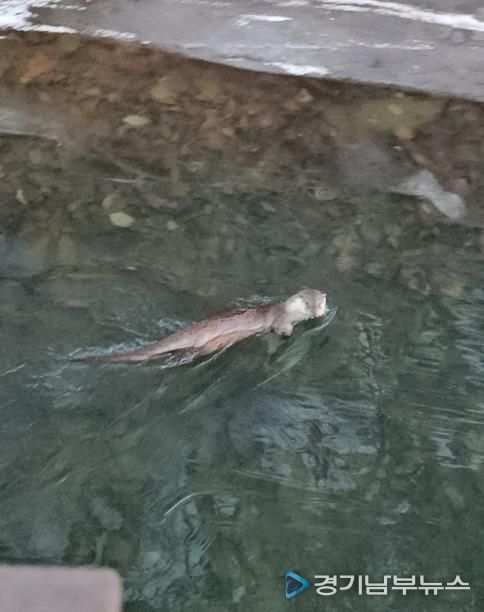 [경기남부뉴스 김혜숙 기자] 군포시의 대표 휴식처인 반월호수에 멸종위기 야생생물 1급이자 천연기념물인 ‘수달’이 모습을 드러냈다.