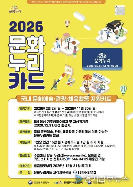 [경기남부뉴스 김혜숙 기자] 고양특례시는 취약계층의 문화향유 기회 확대를 위해 이달 2일부터 통합문화이용권(문화누리카드) 발급을 시작했다고 3일 밝혔다.