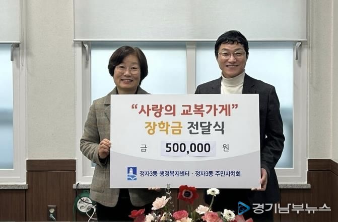 송근숙 정자3동장은 “매년 사랑의 교복가게를 통해 의미 있는 나눔을 실천해 주시는 주민자치회에 감사드린다”며 “기탁해 주신 장학금이 꼭 필요한 학생에게 잘 전달될 수 있도록 하겠다”고 말했다.