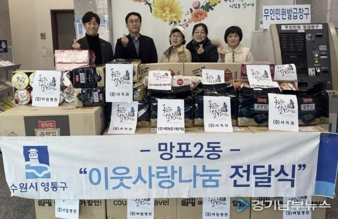 이용태 망포2동장은 “지역사회보장협의체 위원으로서 나눔 문화 확산에 기여해 주시는 버팀병원과 함께해주신 후원 기관들에 깊이 감사드린다”며 “기탁된 후원 물품이 소외된 이웃들에게 잘 전달돼 따뜻한 명절을 보내는 데 도움이 되길 바란다”고 전했다.