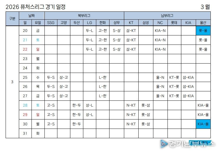 [경기남부뉴스 김혜숙 기자] 2026 KBO 퓨처스리그가 3월 20일(금) 개막한다.