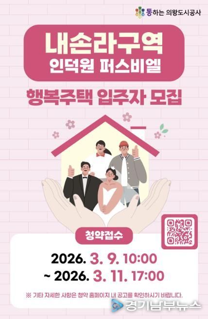 [경기남부뉴스 김혜숙 기자] 의왕도시공사가 공사 설립 이후 최초로 행복주택 공급에 나서며, 의왕시 거주 청년·신혼부부·고령자를 대상으로 내손라구역 행복주택 입주자 모집을 실시한다.