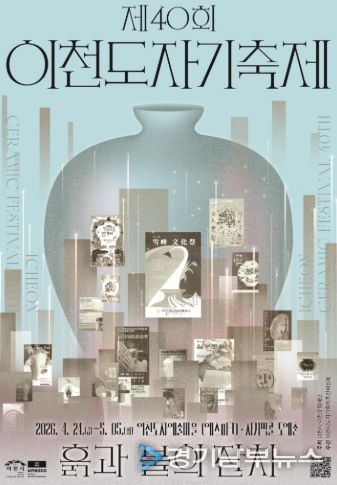 [경기남부뉴스 김혜숙 기자] 유네스코 창의도시이자 대한민국 대표 도자 도시인 이천시가 2026년 4월 24일부터 5월 5일까지 ‘흙과 불의 잔치’를 주제로 이천도자예술마을(예스파크)과 사기막골 도예촌 일원에서 열리는 제40회 이천도자기축제의 포스터 2종을 확정하고, 본격적인 홍보에 나선다.