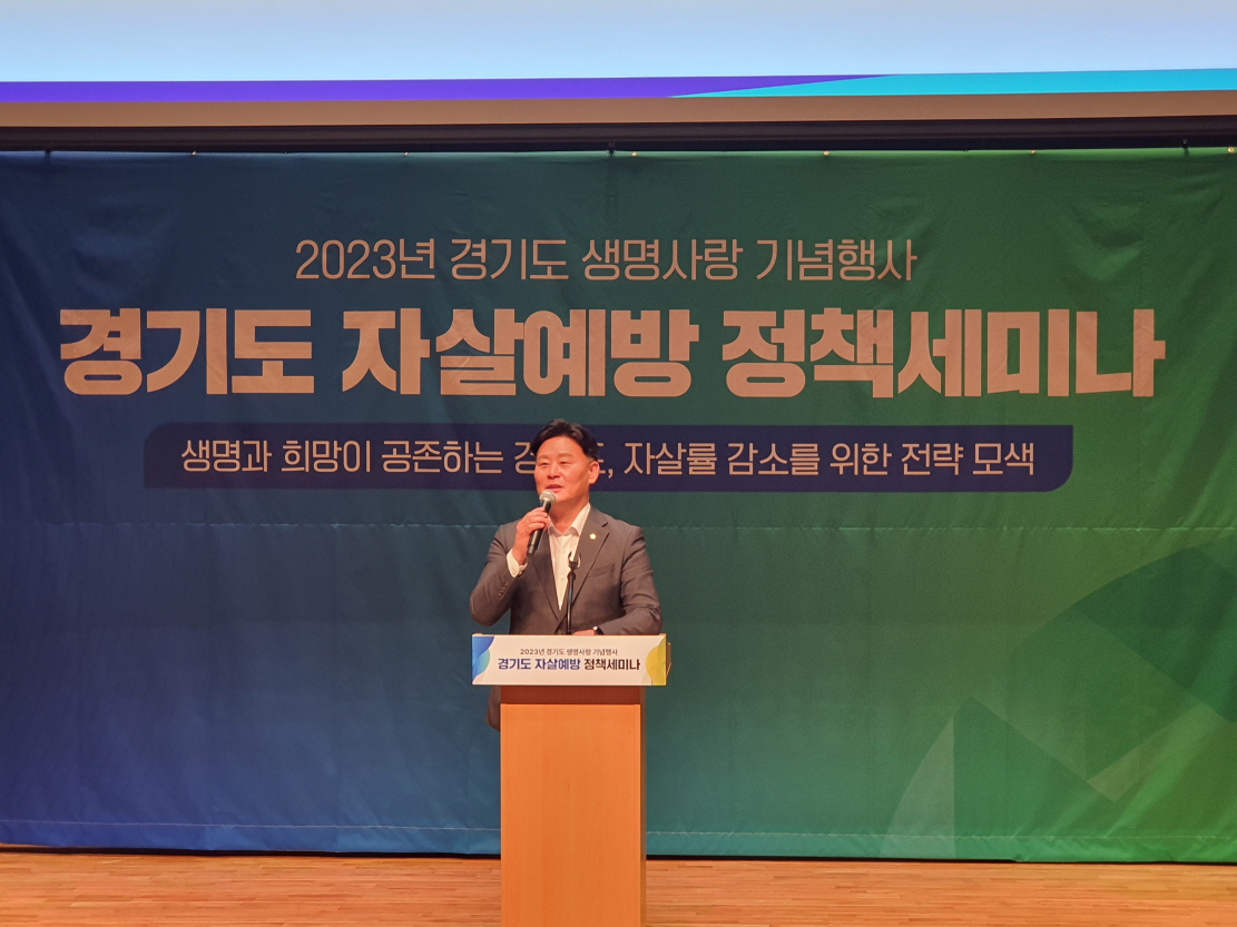 최종현 경기도의회 보건복지위원장(더불어민주당, 수원7)은 7일 경기도청 1층 대강당에서 자살예방의 날 기념식 및 자살예방정책세미나에 참석하여 축사를 했다.