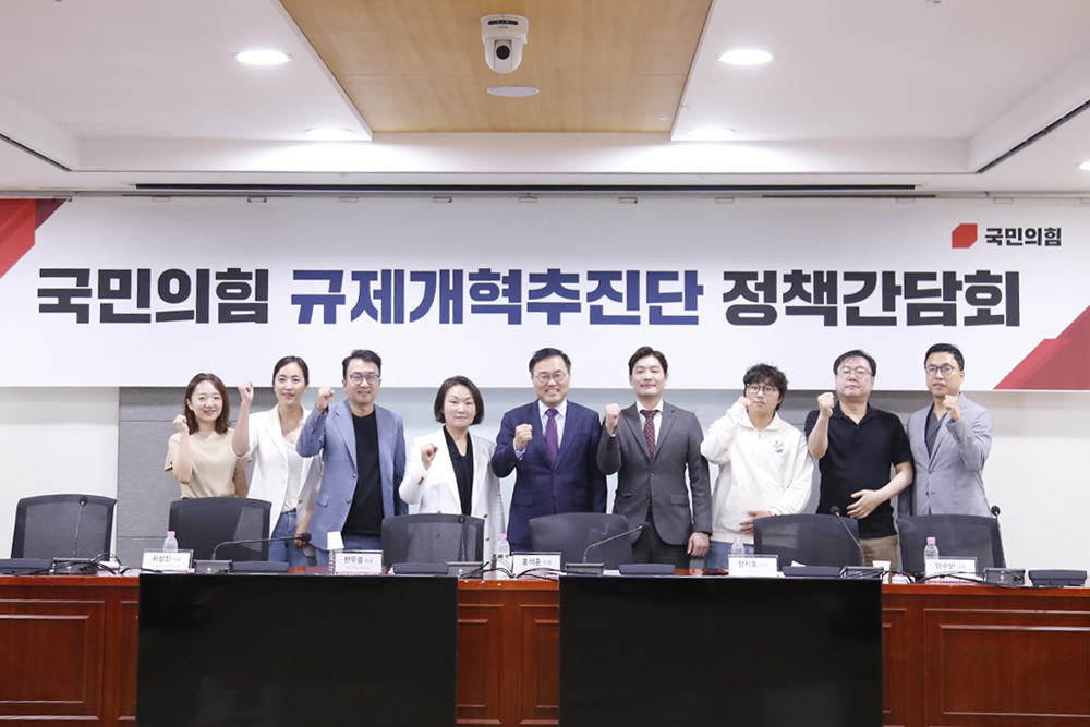 여의도 국회의원회관 제8간담회실에서 진행한 간담회에는 국민의힘 규제개혁추진단 홍석준 위원장, 한무경 위원과 코리아스타트업포럼 최성진 대표, 스타트업얼라이언스 박정은 실장과 이지영 전문위원, 리클(의류) 양수빈 대표, 닥터나우(의료) 장지호 이사, 윈클린(소방) 박영재 대표, 삼쩜삼(세무) 김범섭 대표가 자리했다.