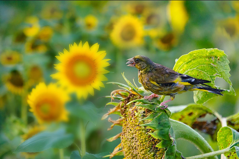 검은 씨앗으로 익어가는 해바라기 꽃대에, 방울새는 빠른 날개짓으로 날아오르며 생존으로 해바라기씨를 먹어치운다. 이 때 포착한 방울새의 표정은 맛있는 식사를 하고 있는 만찬 같았다. 방울새들의 만찬은 가을맞이를 위해 8월 16일 오전부터 트랙터가 해바라기밭을 갈아엎으면서 탑동시민농장의 해바라기 식탁을 잠시 접는다.