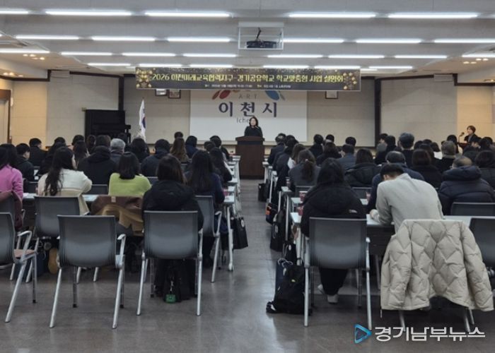 [경기남부뉴스 김혜숙 기자] 이천교육지원청은 이천시와 함께 12월 18일, 이천시청 1층 소통큰마당에서 관내 60교 교감 및 업무담당교사 등을 대상으로 ‘2026 이천미래교육협력지구-경기공유학교 학교맞춤형 사업설명회’를 개최했다.