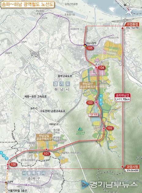 [경기남부뉴스 김혜숙 기자] 경기도는 송파하남선 광역철도 건설사업의 도 시행 구간인 2‧3‧4공구의 일괄입찰 공사 사업자 선정을 위한 입찰을 공고했다고 23일 밝혔다.