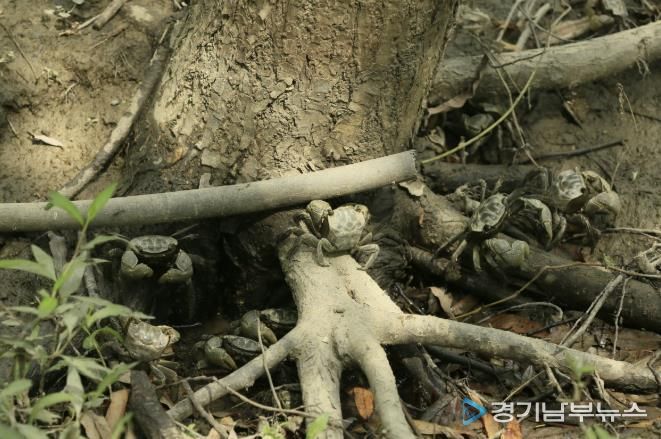 여름철 습지 바닥을 누비던 말똥게는 겨울이면 굴속으로 들어가 활동을 멈추지만, 그들이 남긴 굴과 토양 구조, 영양분은 버드나무 숲의 생장을 돕는다. 이렇게 형성된 숲은 다시 철새와 야생동물의 은신처가 된다.