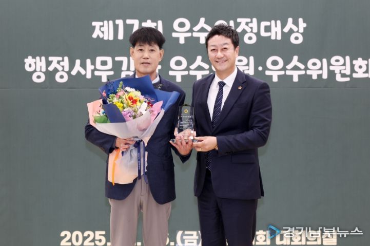 [경기남부뉴스 김혜숙 기자] 경기도의회 건설교통위원회 양운석 의원(더불어민주당, 안성1)이 지난 26일 경기도의회 대회의실에서 개최된 대한민국시도의회 의장협의회 주관 ‘제17회 우수의정대상’ 시상식에서 우수의정대상을 수상했다. 이번 수상은 입법, 예산 심사, 행정 감시 등 지방의회의 핵심 기능을 균형 있게 수행하며 도민 삶의 질 개선에 기여한 점이 종합적으로 평가된 결과다.