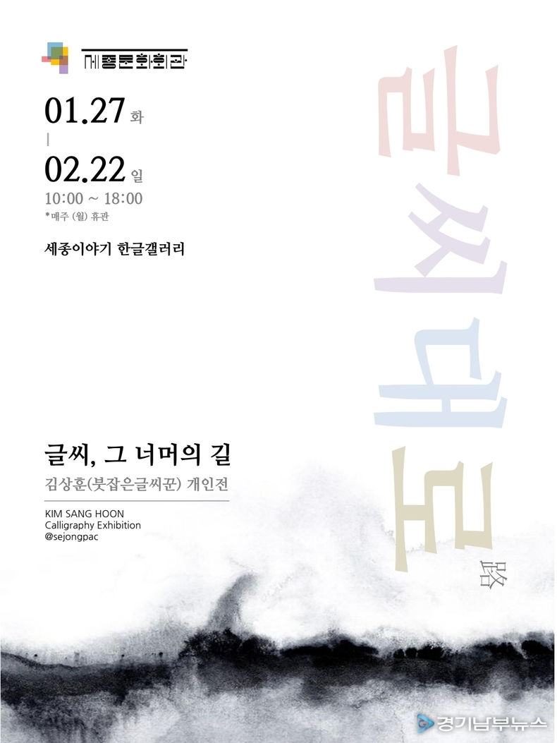 수원을 기반으로 활동해온 캘리그래피 작가 김상훈(필명 붓잡은글씨꾼)이 개인전 《글씨, 그 너머의 길》을 통해 글씨 예술의 새로운 가능성을 제시한다. 전시는 2026년 1월 27일부터 2월 22일까지 세종이야기 한글갤러리에서 열린다.