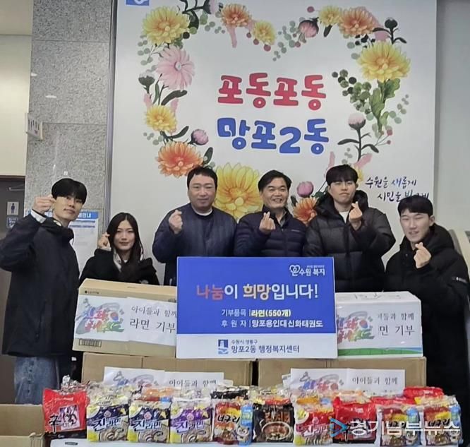 이번에 전달된 라면은 망포용인대신화태권도에 다니는 아이들이 자발적으로 모은 기부 물품으로, 연말을 맞아 이웃과 따뜻한 나눔을 나누기 위해 마련됐다.