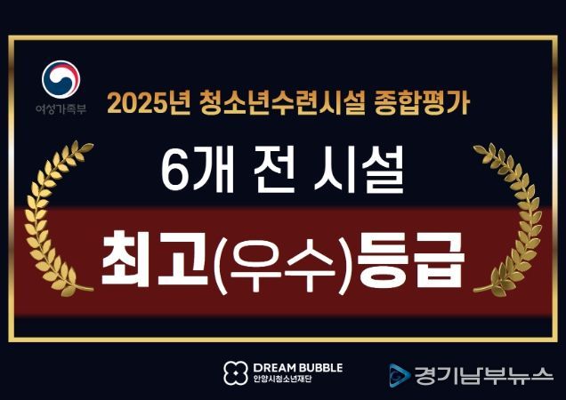 [경기남부뉴스 김혜숙 기자] 안양시청소년재단은 성평등가족부와 한국청소년정책연구원이 실시한 ‘2025년도 청소년수련시설 종합평가’에서 소속 6개 청소년수련시설이 전국 최상위 성과를 거두며 운영 역량을 공식적으로 인정받았다.
