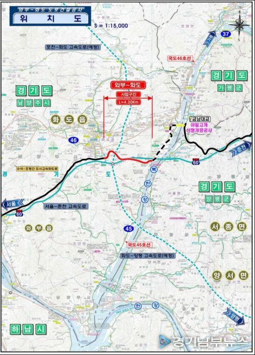 [경기남부뉴스 김혜숙 기자] 국가지원지방도 86호선 와부~화도 4.3㎞ 구간이 5년 8개월 동안의 공사를 마치고 13일 전격 개통된다.
