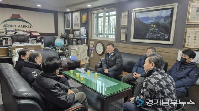[경기남부뉴스 김정옥 기자] 황규돈 신임 팔달구청장은 지난 12일, 관내 전통시장을 방문해 최극렬 지동 상인회장을 비롯한 주요 임원진들과 함께 첫 공식 인사 자리를 갖고, 지역경제 활성화와 전통시장 현안에 대해 의견을 나누는 시간을 가졌다.