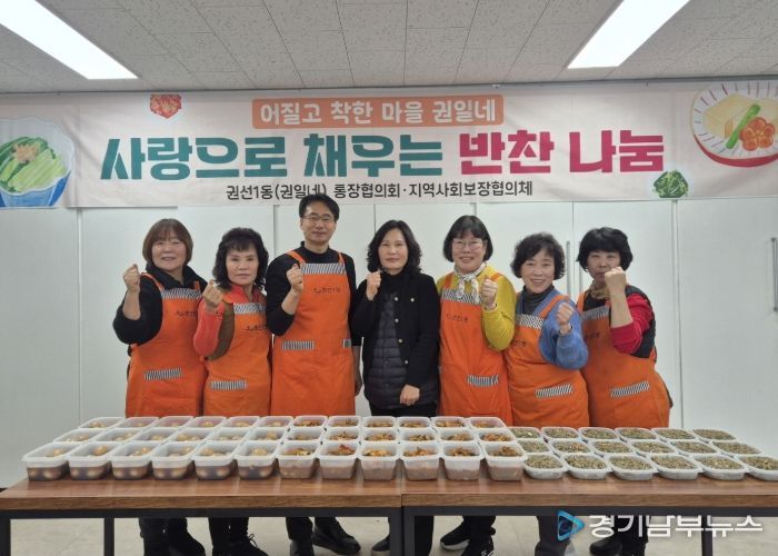 [경기남부뉴스 김정옥 기자] 수원시 권선구 권선1동에서는 14일, 지역 내 부자(父子) 가정을 위한 ‘사랑으로 채우는 반찬 나눔’ 행사를 가졌다.