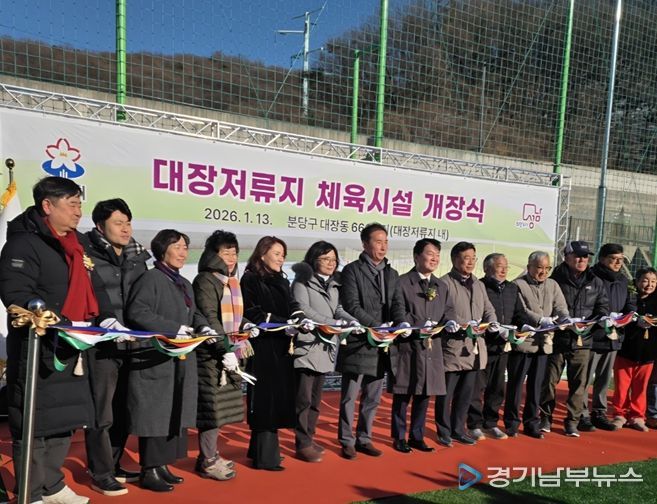 [경기남부뉴스 김혜숙 기자] 성남시의회 국민의힘 김종환 의원(판교·백현·운중·대장, 예산결산특별위원장)이 판교대장지구 주민의 사랑을 받는 대장동 저류지(대장동 665,666번지)가 새로운 체육시설을 확충하고 산책 환경 개선을 골자로 하는 ‘대장저류지 체육시설 확충사업’이 마무리되어 1월 13일 오후 3시에 개소식이 성황리에 열렸다.