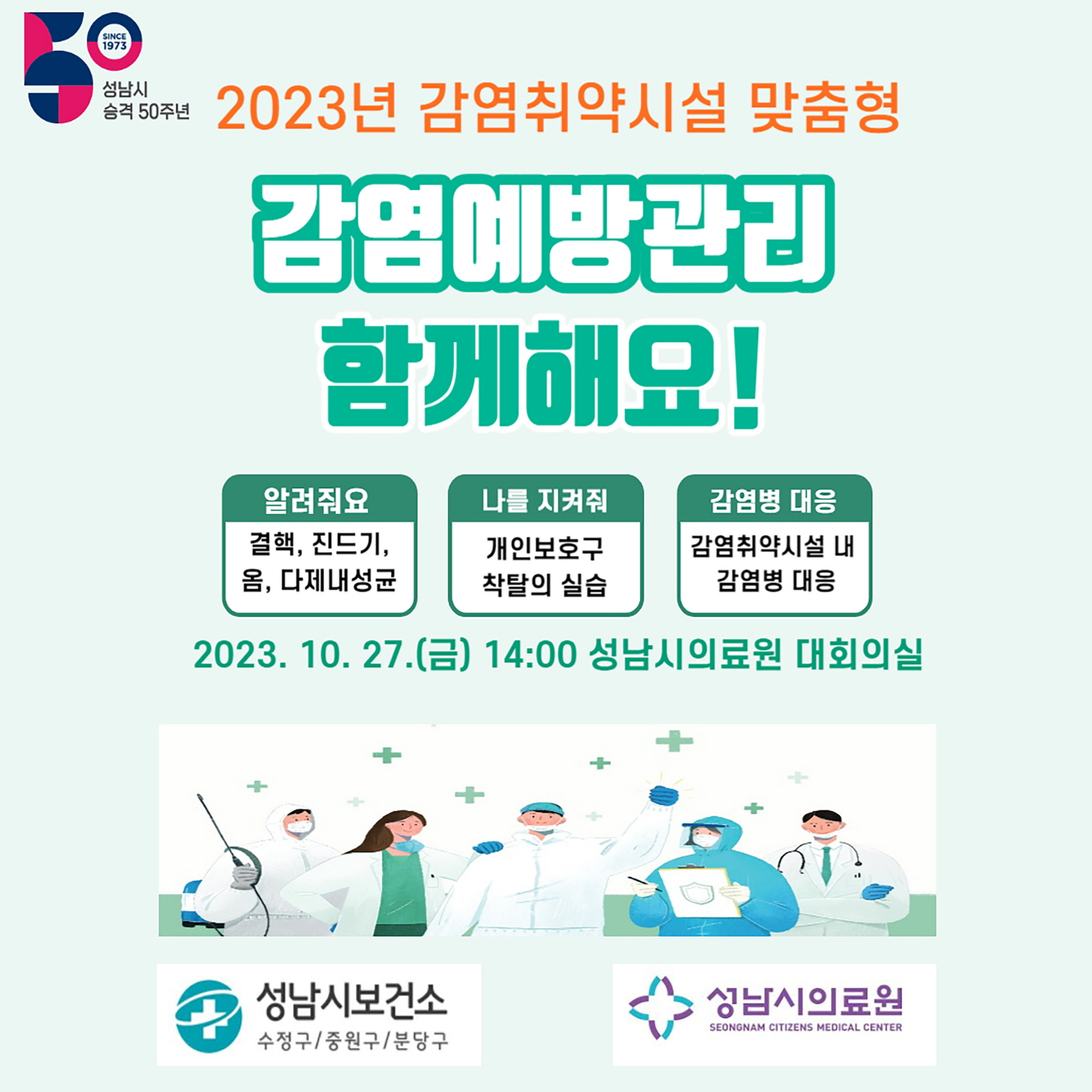 이날 교육은 성남시의료원 감염관리실장과 간호사, 분당구보건소 역학조사관이 강사로 나와 시설별 특성을 반영한 맞춤형 교육을 지원한다.