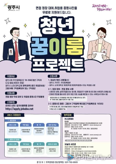 [경기남부뉴스 김혜숙 기자] 광주시는 구직 청년들의 경제적 부담을 완화하고 성공적인 취업을 지원하기 위해 ‘꿈 이룸 프로젝트’를 추진한다고 15일 밝혔다.