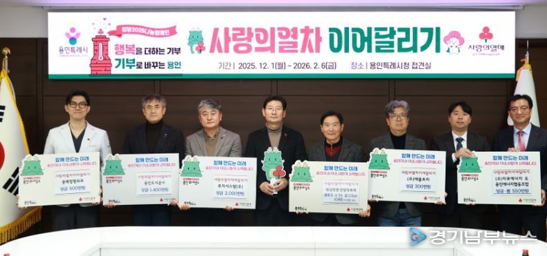 [경기남부뉴스 김혜숙 기자] 용인특례시는 19일 지역 내 기업·단체가 ‘사랑의 열차 이어달리기’에 동참하며 나눔 문화가 확산하고 있다고 밝혔다.