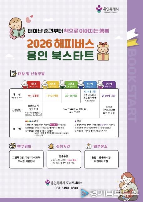 [경기남부뉴스 김혜숙 기자] 용인특례시는 시민 선호도 조사를 통해 ‘2026년 해피버스 용인 북스타트’ 책꾸러미 구성 도서를 최종 선정했다고 26일 밝혔다.