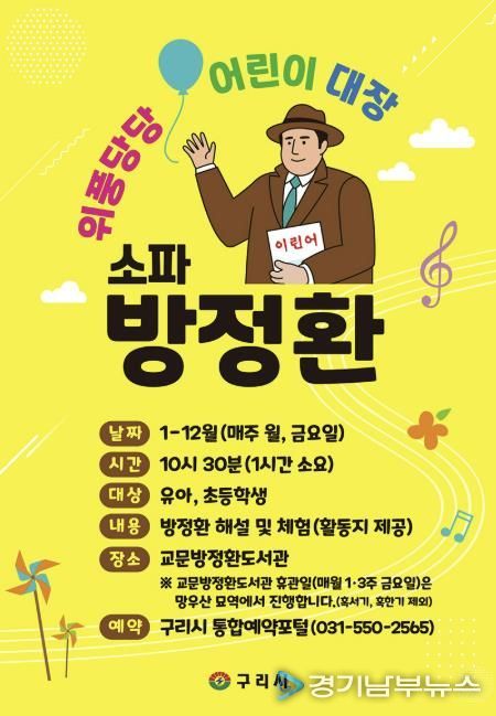 [경기남부뉴스 김혜숙 기자] 구리시는 지난 1월부터 운영 중인 유아와 초등학생 대상 특별 역사교육 프로그램 ‘위풍당당 어린이 대장, 방정환’ 해설이 큰 호응을 얻고 있다고 밝혔다.