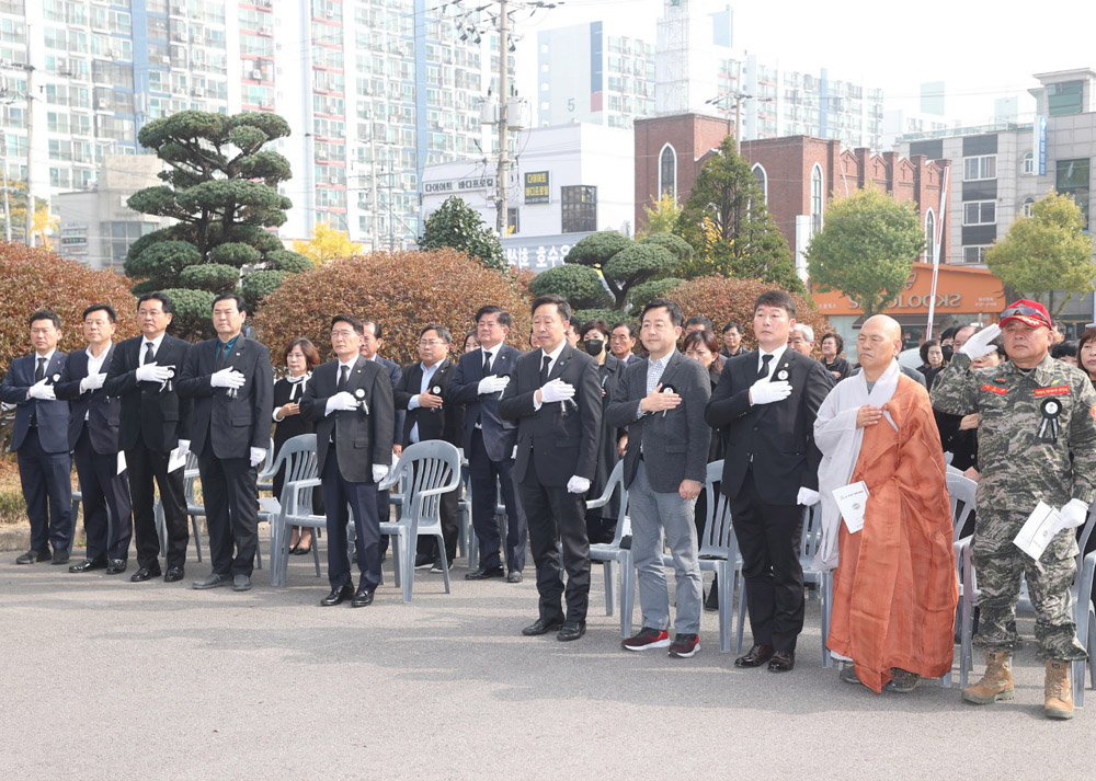 합동위령제에는 수원특례시의회 김기정 의장, 정영모·박현수·이찬용 의원, 주요내빈 및 관계자 등이 참석했으며, 종교의식을 시작으로 이요림 한국자유총연맹 수원특례시지회장의 추념사, 김기정 수원특례시의회 의장 추도사에 이어 조시, 조가, 헌화, 조총 순으로 진행됐다.