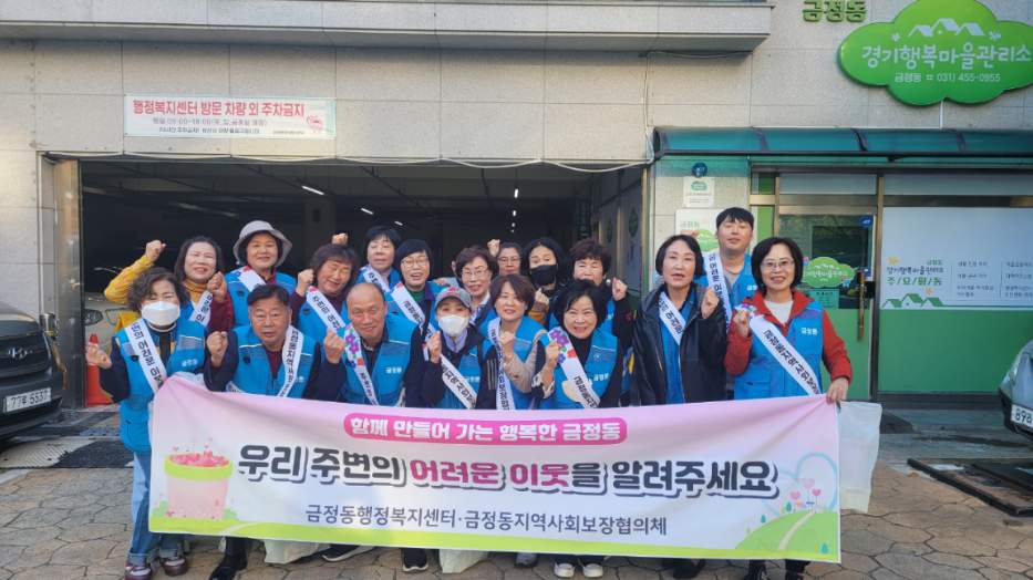 이날 캠페인에는 금정동 지역사회보장협의체 위원 및 직원 등 21명이 5개조로 구성하여 관내 유동 인구가 많은 거리 및 취약계층 밀접지역 내 부동산, 복권방, 편의점 등 생활 밀착형 상가를 중심으로 복지사각지대발굴 안내문과 홍보물품을 배부하면서, 어려운 이웃을 발견할 경우 즉각 제보해달라고 요청했다.