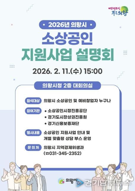 [경기남부뉴스 김혜숙 기자] 의왕시가 2월 11일 오후 3시, 시청 대회의실에서 ‘2026년 소상공인 지원사업 설명회’를 개최한다.