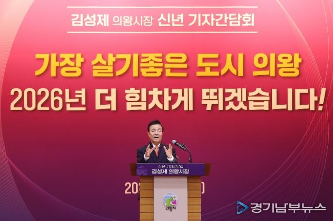[경기남부뉴스 김혜숙 기자] 김성제 의왕시장이 5일 시청 대회의실에서 2026년 신년 기자간담회를 열고 민선8기 의왕시 주요성과와 2026년 시정 운영방향에 대해 설명하는 시간을 가졌다.