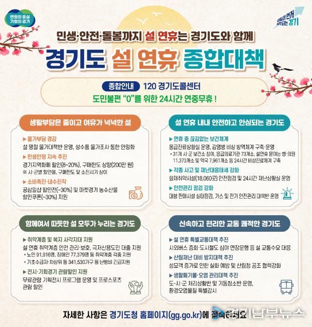 [경기남부뉴스 김혜숙 기자] 경기도가 도민들이 따뜻하고 편안한 명절을 보낼 수 있도록 ‘설 연휴 종합대책’을 추진한다.