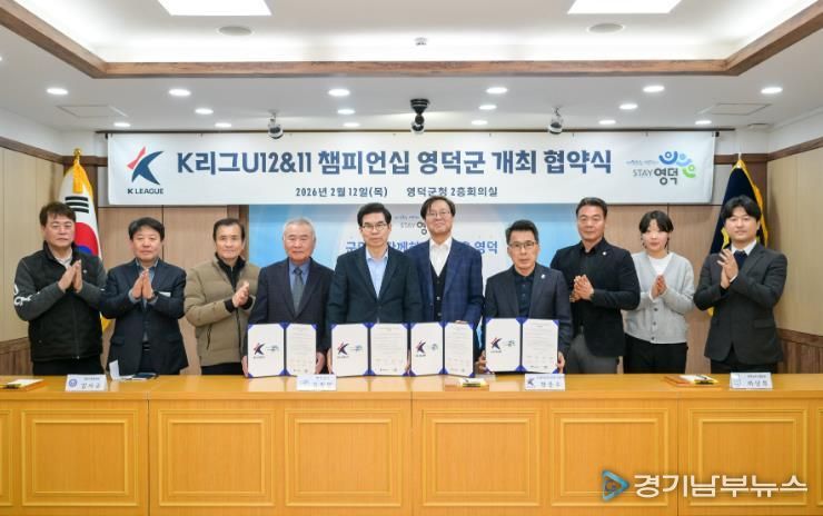 [경기남부뉴스 김혜숙 기자] 영덕군과 한국프로축구연맹, 영덕군체육회, 영덕군축구협회는 영덕군에서 3년간 개최되는 ‘K리그 유스(U-12&11) 챔피언십’의 성공적인 개최를 위해 지난 12일 영덕군청 제1회의실에서 협약식을 개최했다.