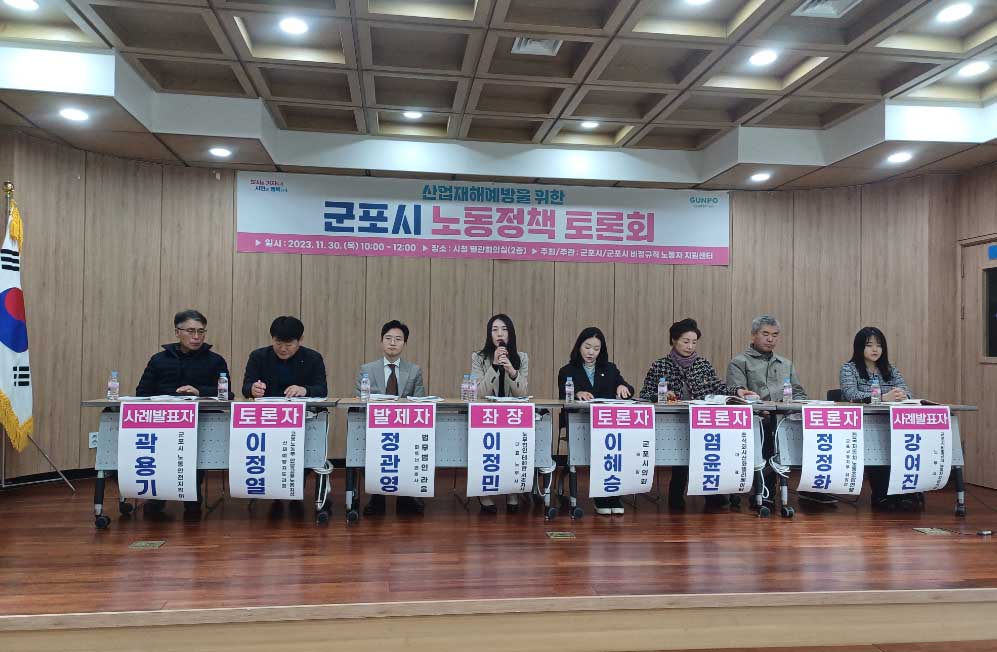 군포시와 군포시 비정규직노동자지원센터는 11월 30일 노동자의 안전을 보호하고 산업재해 예방을 위해「군포시 노동정책 토론회」를 시청 별관회의실에서 개최하였다.