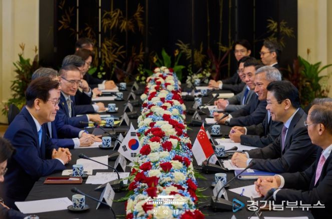 [경기남부뉴스 김혜숙 기자] 싱가포르를 국빈 방문 중인 이재명 대통령은 3월 2일 오전 '로렌스 웡(Lawrence Wong)' 싱가포르 총리와 정상회담을 갖고 양국 간 전략적 동반자 관계 심화 방안과 한반도 및 중동정세 등 주요 국제 현안에 대해 폭넓게 논의했다.