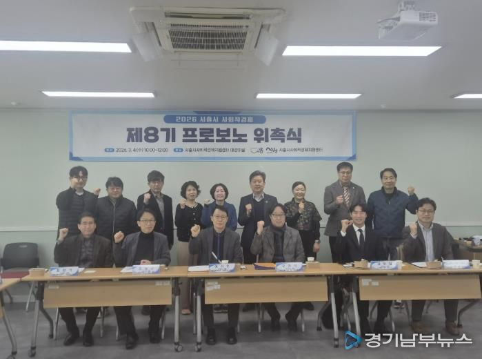 [경기남부뉴스 김혜숙 기자] 시흥시는 지난 3월 4일 사회적경제지원센터 대강당에서 제8기 시흥시 프로보노(Pro Bono) 위원 위촉식을 열었다. ‘프로보노’란 전문가가 자신의 전문성을 공익 활동이나 지역사회 문제 해결을 위해 제공하는 활동을 의미한다.