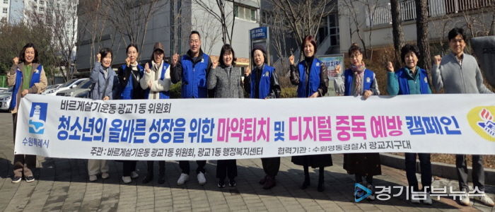 백인서 광교1동 바르게살기운동위원회 위원장은 “청소년들이 바르게 성장할 수 있도록 지역사회가 함께 관심을 갖는 것이 중요하며, 앞으로도 지속적인 캠페인과 활동을 통해 건강한 지역사회 조성에 앞장서겠다”고 밝혔다.