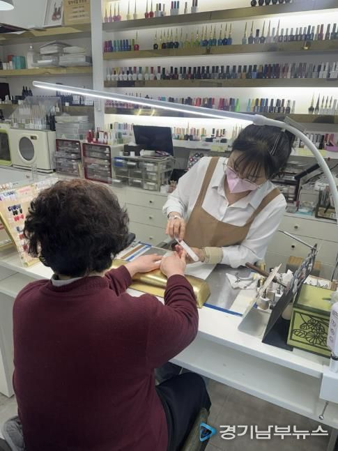 [경기남부뉴스 김정옥 기자] 영통구 망포2동 행정복지센터는 지난 4일 홀몸 어르신을 대상으로 무료 네일아트를 제공하는 “예쁜 손 이야기” 프로그램을 진행했다. 망포2동 지역사회보장협의체가 발굴해 2024년부터 재능기부로 운영 중인 이 프로그램은 관내에 위치한 네일숍(말자네일)의 이정숙 대표의 재능 기부를 통해 매월 정기적으로 진행되고 있다.