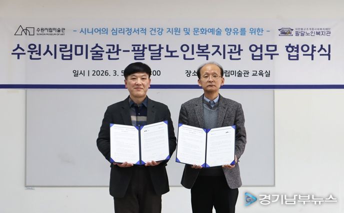 [경기남부뉴스 김정옥 기자] 경기도 수원시립미술관과 수원시 팔달노인복지관은 5일 관내 시니어의 문화예술 향유 활성화를 위한 업무협약을 체결했다.