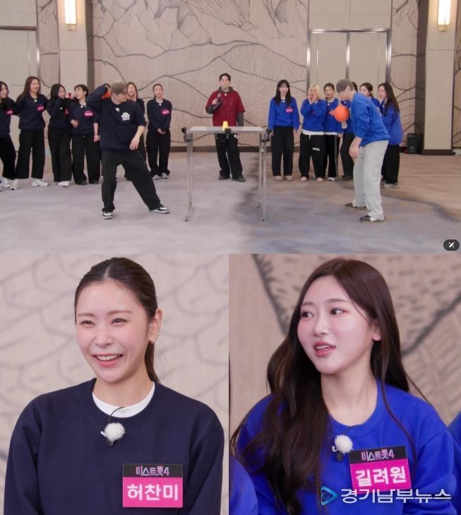 손빈아와 춘길 역시 몸을 사리지 않는 예능 투혼을 펼친다. 두 사람은 얼굴에 스타킹을 뒤집어쓴 채 상모 돌리기 게임에 도전하는 등 온몸을 던진 활약으로 현장을 웃음바다로 만든다. 결국 춘길은 녹화 도중 뜻밖의 현타(?)에 빠져 눈물을 보이기도 했다는 전언. 웃음과 혼란이 뒤섞인 '미스트롯4' TOP16의 예능 수련회가 어떤 모습으로 펼쳐질지 기대를 모은다.
