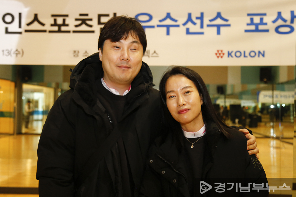올해 코오롱장애인스포츠단 선수는 사격, 볼링, 수영 등 여러 종목에서 두각을 나타냈다. 전국장애인체육대회 볼링 종목에서 금메달을 딴 아내 고미양 선수와 남편 김정일 선수를 만났다. 오늘 남편의 박수엔 더더욱 응원과 사랑이 담겼다. 포상 소감으로 부부는 “볼링이라는 스포츠가 나 자신과의 약속, 다짐을 만들어 주었고 우리를 장애에서 극복하게 해 주었다.”며 서로 “당신 덕분”이라고 감사해했다.
