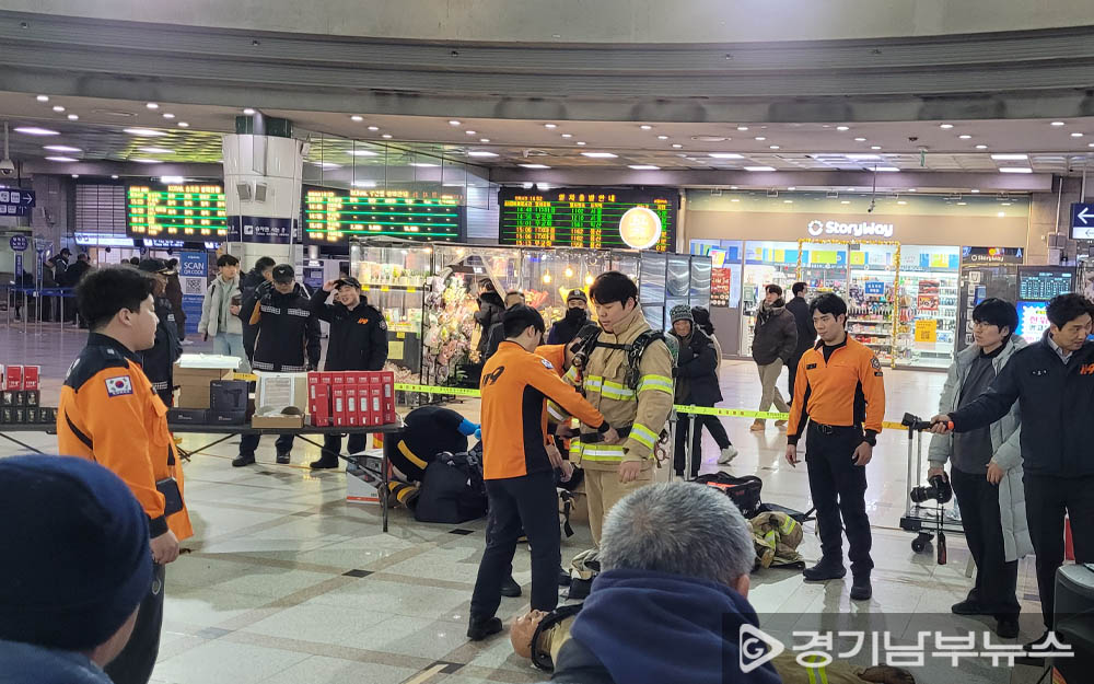 27일 오후 수원역 2층 광장에서는 코레일과 경기도긴급구조통제단의 소방안전체험이 펼쳐졌다,
