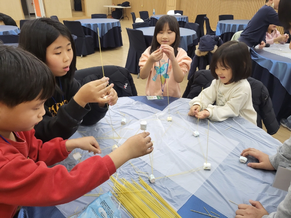 박인우 학생은 ‘마시멜로우와 스파게티 면으로 건축을 할 때 자꾸 부러져서 실망하고 답답했지만 서로 잡아주고 의지할 때 완성 되어 가는 모습이 좋았어요“라고 소감을 말했다.