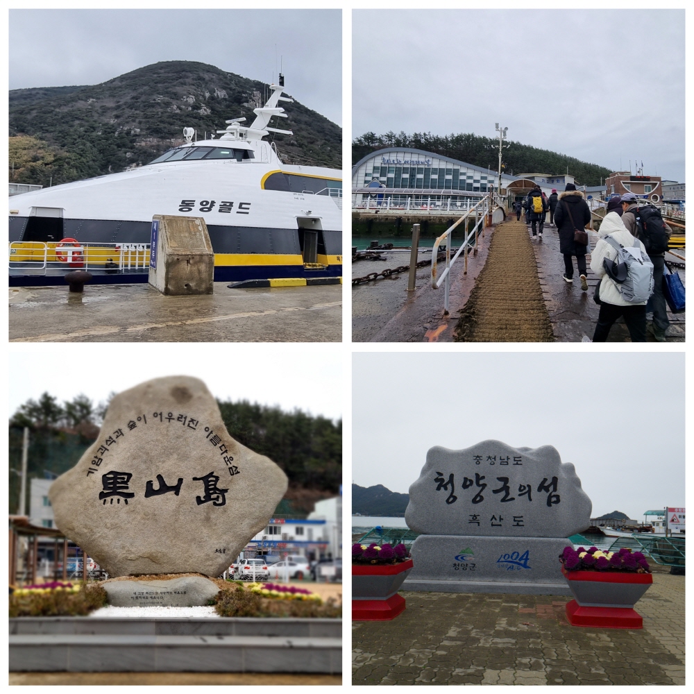 홍도에서 유람선 투어를 마친 후 10시 30분에 동양골드를 타고 마지막 여행지인 흑산도에 11시에 도착했습니다. 배에서 내려 걸어가는데 어떤 분들이 지나가며 “여기가 왜 충청남도 청양군이지 이상하네” 하며 서로 이야기를 하며 갑니다. 나도 의아해서 근처에 있는 표지석을 봤는데 청양군이라 써있어서 깜짝 놀랐습니다. 궁금증을 참지 못해 안내소에 찾아가 물어봤더니, 22년 10월 22일에 바다가 없는 충남 청양군과 신안군이 MOU를 체결했다고 합니다. 표지석은 최익현 선생의 유배지인 흑산도를 청양군이 명예섬으로 지정함을 기념하여 제작되었다고 했습니다.
