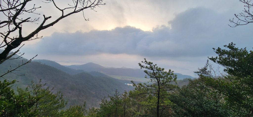 이른 새벽4:44분에 출발하여 흐른 날씨에 기대를 안 했는데 잠시나마 일출을 보며 트레킹을 이어간다. 날은 점점 환해지고 짙은 안개로 바로 앞 땅만 보며 걸어 도솔봉을 오른다.