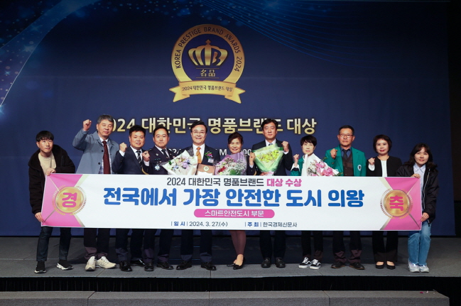 의왕시(시장 김성제)가 지난 27일 더플라자호텔에서 개최된 ‘2024 대한민국 명품브랜드 대상’ 시상식에서 스마트안전도시 부문 대상을 수상했다.