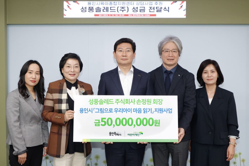 손정원 성풍솔레드(주) 회장은 “회사가 용인에 있다 보니 아무래도 지역에 대한 애착이 남다르기도 하고 또 어린이들의 건강한 성장에 작게나마 도움이 됐으면 해 성금을 기탁하게 됐다”며 “꾸준한 나눔을 통해 지역사회와 상생을 이어가겠다”고 말했다.
